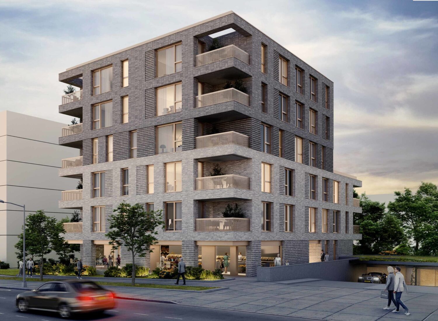 Le projet, développé dans le cadre d’une compétition pour la Ville de Luxembourg, s’implante le long du Boulevard Konrad Adenauer à Kirchberg, un quartier en pleine densification. Il propose un bâtiment mixte de six étages sur deux niveaux de sous-sol. Le rez-de-chaussée, partiellement dédié à des activités commerciales, forme un socle animé pour les cinq niveaux supérieurs, qui accueillent vingt logements d’une à quatre chambres. Majoritairement à double orientation, ces appartements bénéficient de loggias apportant lumière naturelle et vues dégagées. Les sous-sols regroupent quant à eux le parking, les caves, la buanderie, les installations techniques ainsi qu’un système de récupération des eaux pluviales.