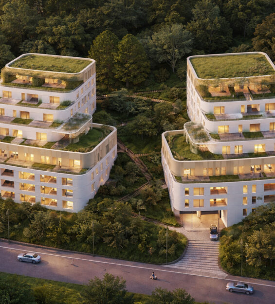 Développé en collaboration avec Binst Architects, le projet propose des bâtiments aux façades élégantes et aux volumes à échelle humaine, assurant une intégration harmonieuse au sein du quartier. L’arrière du site, ouvert sur le parc Laval et l’Alzette, offre un cadre calme et verdoyant. Les logements sont dotés de loggias et terrasses privatives, majoritairement orientées vers le parc pour optimiser les vues et favoriser le contact direct avec la nature.